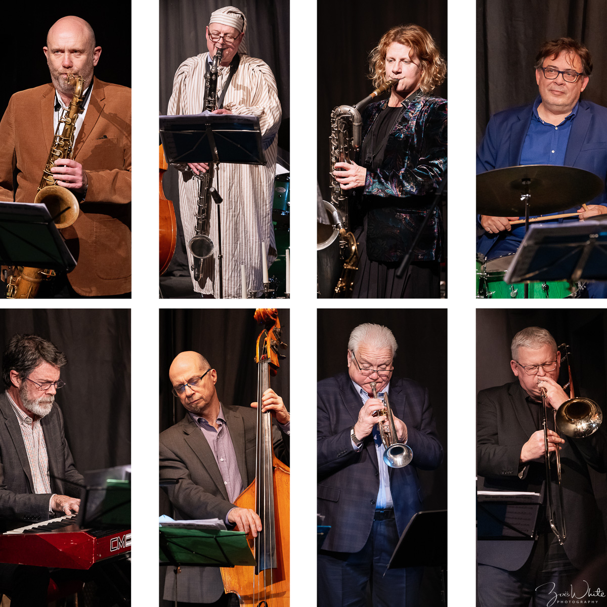 Alan Barnes alto saxophone, clarinet, bass clarinet, composer, arranger, Bruce Adams trumpet, flugelhorn, Mark Nightingale trombone, arranger, Karen Sharp tenor saxophone, baritone saxophone, clarinet, Robert Fowler tenor saxophone, baritone saxophone, clarinet, David Newton keyboard, Simon Thorpe bass, Clark Tracey drums