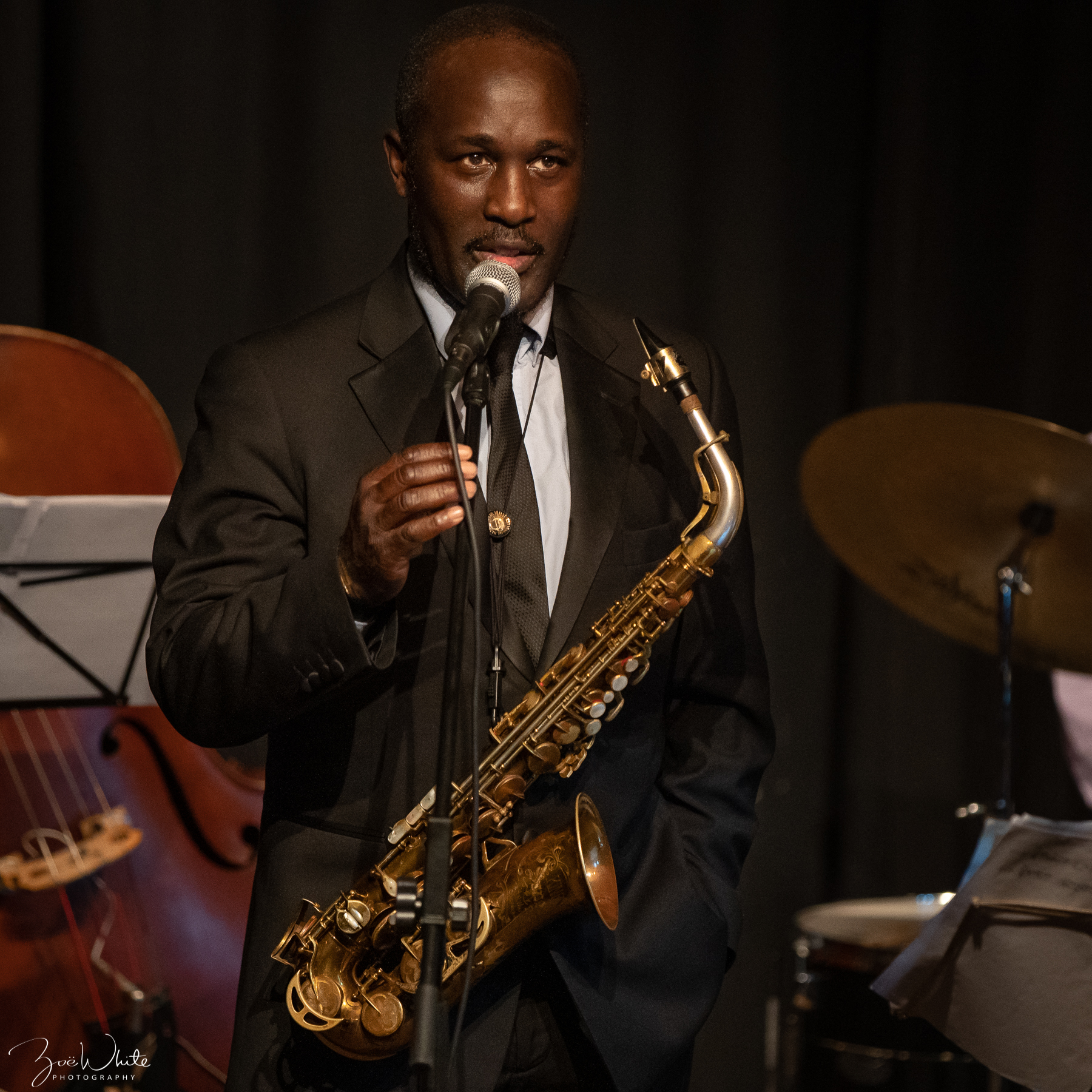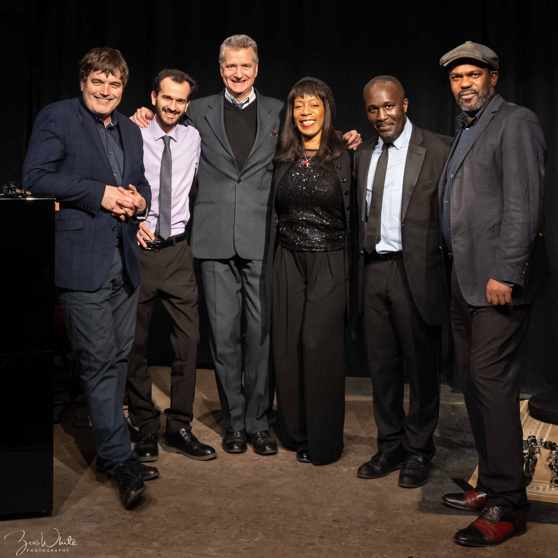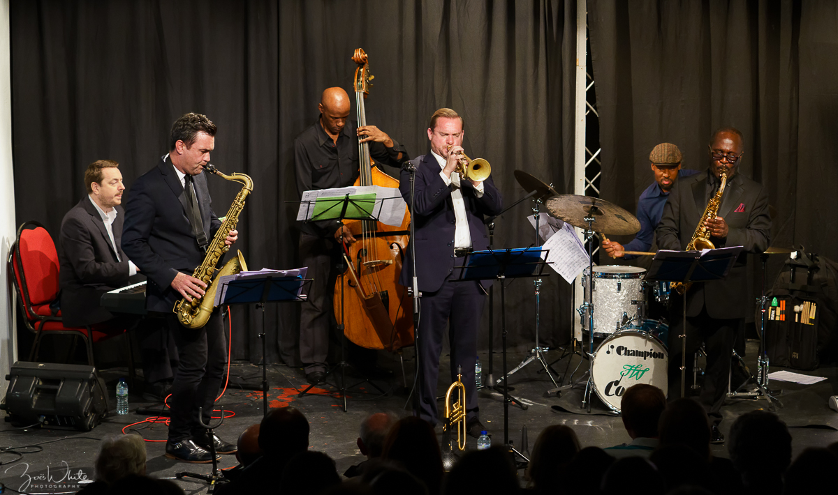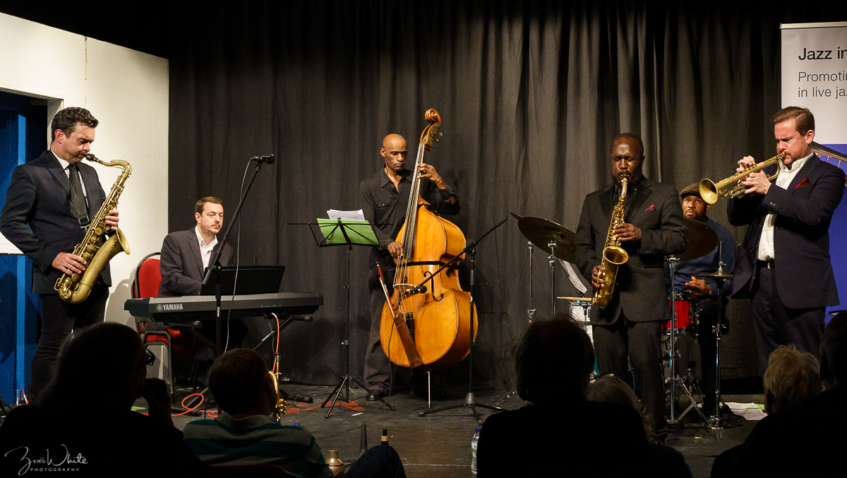 Tony Kofi alto saxophone, Byron Wallen trumpet, Alex Webb piano, Andy Cleyndert bass,  Alfonso Vitale drums, Deelee Dubé guest vocalist.