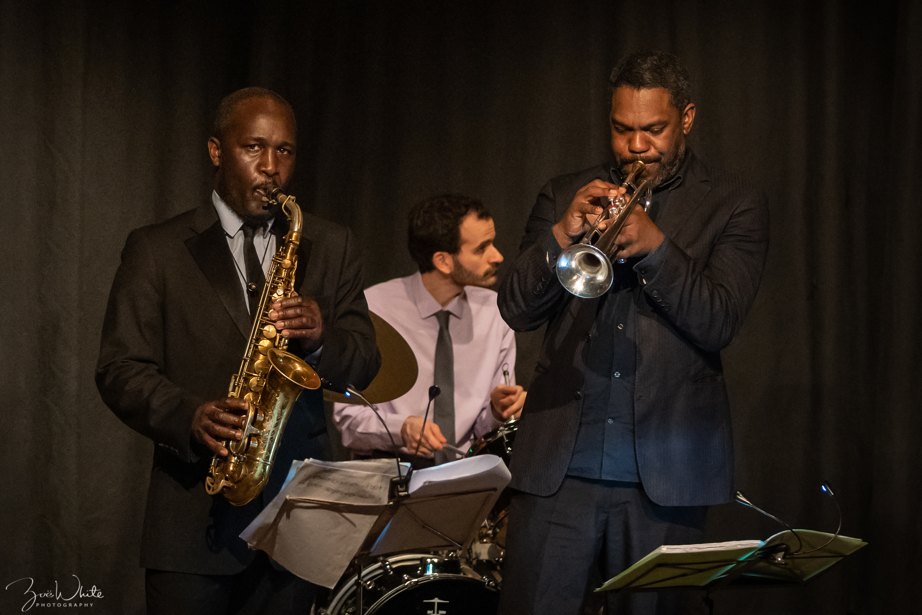 Stuart Henderson trumpet & flugelhorn, Ollie Weston tenor saxophone; Tom Berge keyboards, Raph Mizraki bass, Simon Price drums